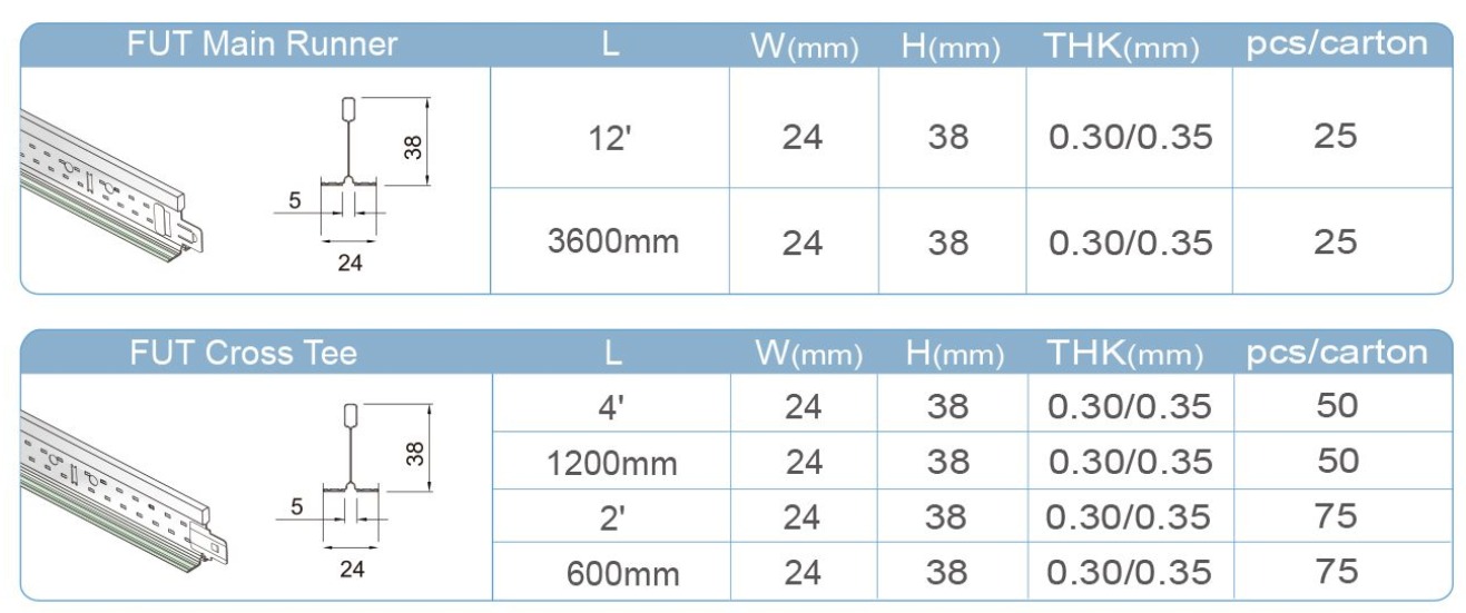 (Основные и поперечные) профили Т-образной сетки потолка UT и (основные и поперечные) профили Т-образной сетки потолка FUT могут быть изготовлены всего на одной машине.