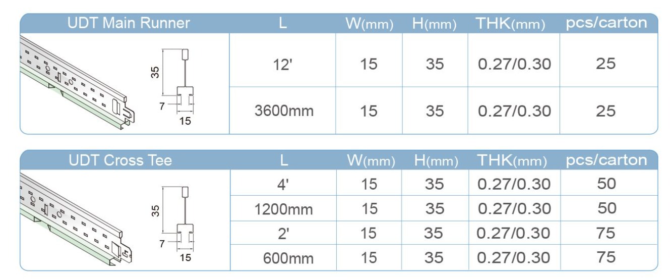 (Основные и поперечные) профили Т-образной сетки потолка UT и (основные и поперечные) профили Т-образной сетки потолка UDT могут быть изготовлены всего на одной машине.