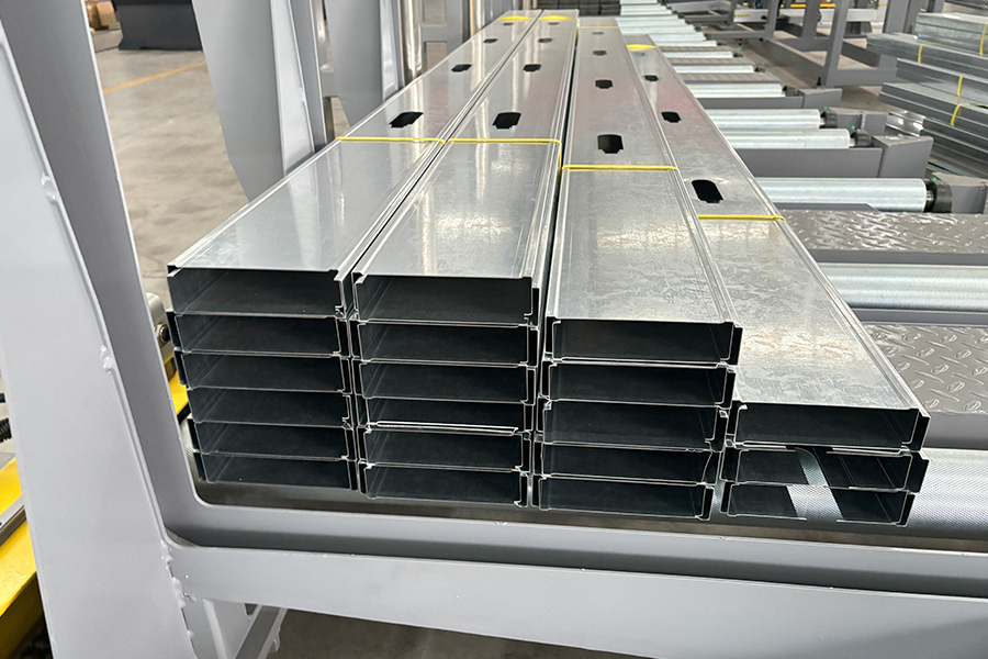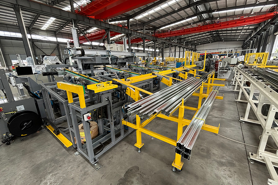 Дом / Продукция / Профилегибочная машина для гипсокартона / Профилегибочная машина для автоматической смены ширины, высоты, толщины шпилек и направляющих с автоматической системой упаковки